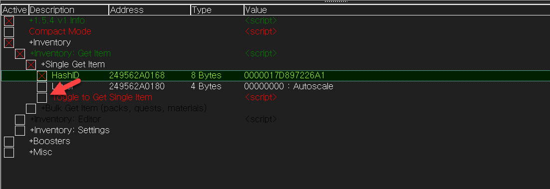 게임의 인벤토리 화면에서 ALT+TAB 키를 눌러 치트엔진으로 이동 합니다